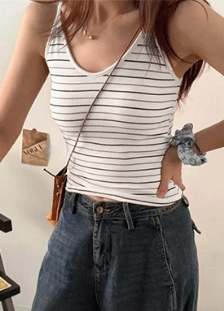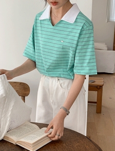 트임카라넥 스트라이프 루즈핏티셔츠