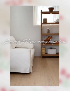 퍼프소매 허리스트링 플라워원피스