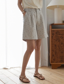 앞단추+뒷밴딩 코튼 플라워팬츠