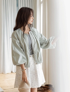 더블핀턱 벌룬소매 집업점퍼