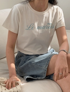 배색영문 라운드넥 코튼티셔츠