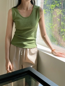 U넥 세로골지 슬리브리스 탑