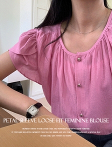 꽃잎소매 쿨레이온 셔링블라우스