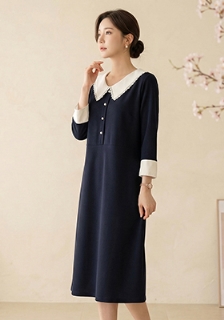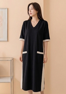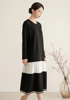 [빅사이즈] 빅카라 배색 롱 원피스 (6360)