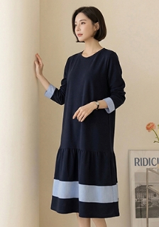 [빅사이즈] 배색라인 원피스 (6361)