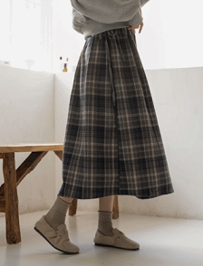 사이드리본 올밴딩 체크스커트