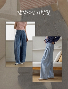 절개핀턱 아방핏 빈티지워싱 데님팬츠