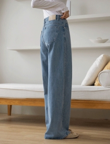 사선라인 빈티지워싱 와이드핏 데님팬츠