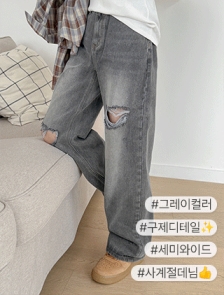 [EVELLET]헬리픈 리사이클 데님 와이드팬츠