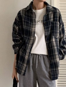 컬러 체크 배색 맨투맨 [A22W05RH]