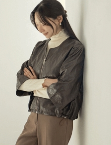 노카라 집업 7부소매 레더자켓