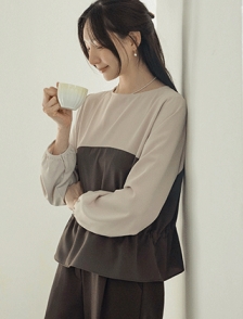 허리스트링 루즈핏 배색블라우스