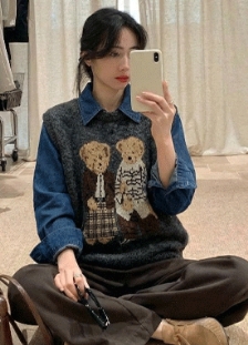 데님배색 스트링 후디[A16W05V]