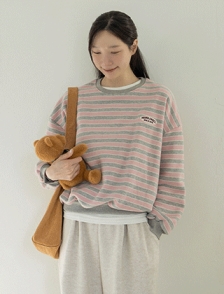 피치기모 스트라이프 루즈핏티셔츠