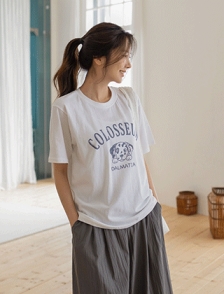 아일렛 자수 가오리핏 뒷트임 티셔츠