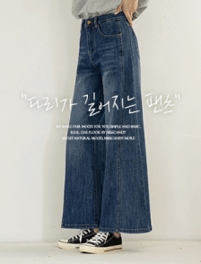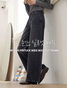 사선핀턱 히든밴딩 부츠컷 와이드데님