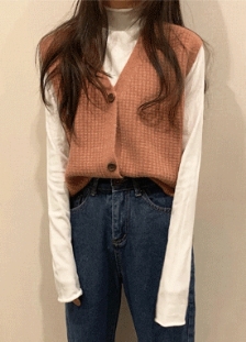버튼 와플 니트 베스트 [5월 4일-5월 6일 발송]