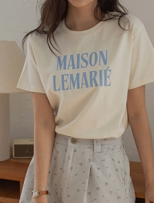 배색영문 라운드넥 코튼티셔츠